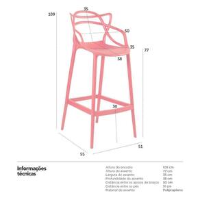 Banqueta Allegra: Material: Polipropileno - Altura do encosto: 109 cm - Altura do assento: 77 cm - Largura do assento: 35 cm - Profundidade do assento: 38 cm - Distância entre os apoios de braços: 50 cm - Distância entre os pés: 51 cm - Peso suportado: 120 kg - Garantia: 3 meses.