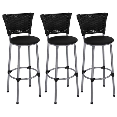 Kit 3 Banquetas Altas Prata Junco Preto com Assento Preto FortmixSeja para acompanhar um café rápido no início do dia ou aquela confraternização especial com os amigos, a Banqueta Alta com Encosto será uma grande aliada na composição do seu espaço. Modelo alta, ela é ideal para acompanhar bancadas e balcões, seja na sala de jantar, espaço de churrasqueira ou até mesmo em seu estabelecimento comercial.Com design simples que conta com cor sóbria e junco, a peça embeleza o seu espaço ao mesmo tempo que garante a comodidade ideal, afinal, o assento preenchido em espuma recebe superbem o corpo além do suporte para os pés.Produto que faz toda diferença no seu ambiente.Características da Banqueta Alta com Encosto JuncadoCor da Estrutura: PrataCor do Assento: PretoCapacidade (kg): 120 kgMaterial da estrutura: Tubos de Aço carbono (7/8 de polegada)Material do assento: MDF e EspumaEncosto: Junco PretoDimensões da Banqueta Alta com Encosto Juncado Altura do assento até o chão (cm): 72 CmAltura do encosto até o chão (cm): 95 CmDiâmetro do assento: 32 CmConteúdo da Embalagem: 03 Banquetas Altas com Encosto JuncadoDicasNão deixe suas banquetas expostas ao sol por mais de 4 horas.Não use produtos abrasivos na limpeza de suas Banquetas.Usar um pano umedecido na limpeza da Banqueta e, logo em seguida, seque-as com um pano seco.A tonalidade da cor pode variar de acordo com o lote do fabricante e/ou as configurações de seu monitor.*Imagens meramente ilustrativasGarantia3 Meses contra defeito de fabricação