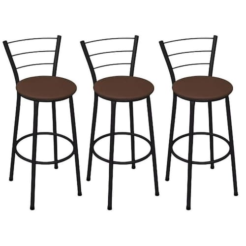 Kit 3 Banquetas Altas Itália Preta com Assento Marrom FortmixSeja para acompanhar um café rápido no início do dia ou aquela confraternização especial com os amigos, a Banqueta Alta com Encosto será uma grande aliada na composição do seu espaço. Modelo alta, ela é ideal para acompanhar bancadas e balcões, seja na sala de jantar, espaço de churrasqueira ou até mesmo em seu estabelecimento comercial.Com design simples que conta com cor sóbria, a peça embeleza o seu espaço ao mesmo tempo que garante a comodidade ideal, afinal, o assento preenchido em espuma recebe superbem o corpo além do suporte para os pés.Produto que faz toda diferença no seu ambiente.Características da Banqueta Alta com EncostoCor da Estrutura: PretaCor do Assento: MarromCapacidade (kg): 120 kgMaterial da estrutura: Tubos de Aço carbono (7/8 de polegada)Material do assento: MDF e EspumaEncosto: ArameDimensões da Banqueta Alta com Encosto Altura do assento até o chão (cm): 72 CmAltura do encosto até o chão (cm): 95 CmDiâmetro do assento: 32 CmConteúdo da Embalagem: 03 Banquetas Altas com EncostoDicasNão deixe suas banquetas expostas ao sol por mais de 4 horas.Não use produtos abrasivos na limpeza de suas Banquetas.Usar um pano umedecido na limpeza da Banqueta e, logo em seguida, seque-as com um pano seco.A tonalidade da cor pode variar de acordo com o lote do fabricante e/ou as configurações de seu monitor.*Imagens meramente ilustrativasGarantia3 Meses contra defeito de fabricação