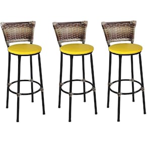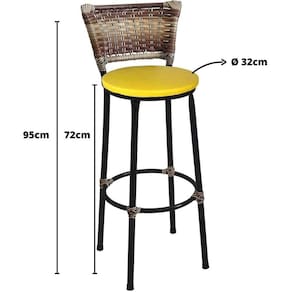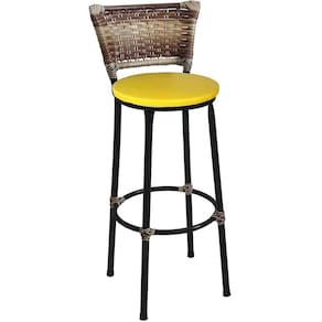 Banqueta Alta Preta Junco Capuccino com Assento Amarelo Fortmix
