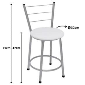 Banqueta Baixa Prata com Assento Branco Fortmix   Seja para acompanhar um café rápido no início do dia ou aquela confraternização especial com os amigos, a Banqueta Baixa com Encosto será uma grande aliada na composição do seu espaço. Modelo baixa, ela é ideal para acompanhar bancadas e balcões, seja na sala de jantar, espaço de churrasqueira ou até mesmo em seu estabelecimento comercial.   Com design simples que conta com cor sóbria, a peça embeleza o seu espaço ao mesmo tempo que garante a comodidade ideal, afinal, o assento preenchido em espuma recebe superbem o corpo além do suporte para os pés.  Produto que faz toda diferença no seu ambiente.   Características da Banqueta Baixa com Encosto   Cor da Estrutura: Prata Cor do Assento: Branco Capacidade (kg): 120 kg Material da estrutura: Tubos de Aço carbono (7/8 de polegada) Material do assento: MDF e Espuma Encosto: Junco   Dimensões    Altura do assento até o chão (cm): 47 Cm Altura do encosto até o chão (cm): 69 Cm Diâmetro do assento: 32 Cm   Conteúdo da Embalagem: 03 Banqueta Baixa com Encosto   Dicas   Não deixe suas banquetas expostas ao sol por mais de 4 horas; Não use produtos abrasivos na limpeza de suas Banquetas; Usar um pano umedecido na limpeza da Banqueta e, logo em seguida, seque-as com um pano seco.   A tonalidade da cor pode variar de acordo com o lote do fabricante e/ou as configurações de seu monitor.   *Imagens meramente ilustrativas   Garantia   3 Meses contra defeito de fabricação