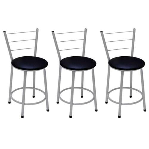Banqueta Baixa Prata com Assento Preto Fortmix