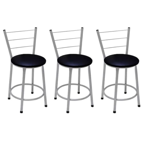 Kit 3 Banquetas Baixas Prata com Assento Preto FortmixSeja para acompanhar um café rápido no início do dia ou aquela confraternização especial com os amigos, a Banqueta Baixa com Encosto será uma grande aliada na composição do seu espaço. Modelo baixa, ela é ideal para acompanhar bancadas e balcões, seja na sala de jantar, espaço de churrasqueira ou até mesmo em seu estabelecimento comercial.Com design simples que conta com cor sóbria, a peça embeleza o seu espaço ao mesmo tempo que garante a comodidade ideal, afinal, o assento preenchido em espuma recebe superbem o corpo além do suporte para os pés. Produto que faz toda diferença no seu ambiente.Características da Banqueta Baixa com EncostoCor da estrutura: PrataCor do Assento: PretoCapacidade (kg): 120 kgMaterial da estrutura: Tubos de Aço carbono (7/8 de polegada)Material do assento: MDF e EspumaEncosto: JuncoDimensões Altura do assento até o chão (cm): 47 CmAltura do encosto até o chão (cm): 69 CmDiâmetro do assento: 32 CmConteúdo da Embalagem: 03 Banquetas Baixas com EncostoDicasNão deixe suas banquetas expostas ao sol por mais de 4 horas;Não use produtos abrasivos na limpeza de suas Banquetas;Usar um pano umedecido na limpeza da Banqueta e, logo em seguida, seque-as com um pano seco.A tonalidade da cor pode variar de acordo com o lote do fabricante e/ou as configurações de seu monitor.*Imagens meramente ilustrativasGarantia3 Meses contra defeito de fabricação