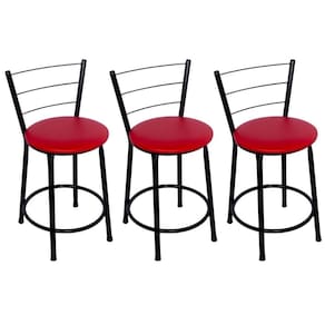 Kit 3 Banquetas Baixas Preta com Encosto Assento Vermelho