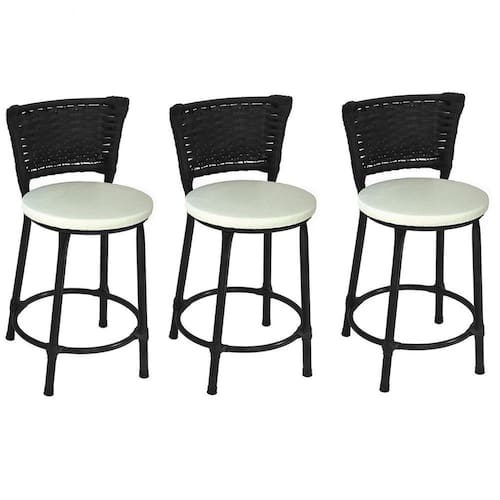 Kit 3 Banquetas Baixas Preta Junco Preto com Assento Branco FortmixSeja para acompanhar um café rápido no início do dia ou aquela confraternização especial com os amigos, a Banqueta Baixa com Encosto será uma grande aliada na composição do seu espaço. Modelo baixa, ela é ideal para acompanhar bancadas e balcões, seja na sala de jantar, espaço de churrasqueira ou até mesmo em seu estabelecimento comercial.Com design simples que conta com cor sóbria, a peça embeleza o seu espaço ao mesmo tempo que garante a comodidade ideal, afinal, o assento preenchido em espuma recebe superbem o corpo além do suporte para os pés. Produto que faz toda diferença no seu ambiente.Características da Banqueta Baixa com EncostoCor da estrutura: PretaCor do Assento: BrancoCapacidade (kg): 120 kgMaterial da estrutura: Tubos de Aço carbono (7/8 de polegada)Material do assento: MDF e EspumaEncosto: JuncoDimensões Altura do assento até o chão (cm): 47 CmAltura do encosto até o chão (cm): 69 CmDiâmetro do assento: 32 CmConteúdo da Embalagem: 03 Banquetas Baixas com EncostoDicasNão deixe suas banquetas expostas ao sol por mais de 4 horas;Não use produtos abrasivos na limpeza de suas Banquetas;Usar um pano umedecido na limpeza da Banqueta e, logo em seguida, seque-as com um pano seco.A tonalidade da cor pode variar de acordo com o lote do fabricante e/ou as configurações de seu monitor.*Imagens meramente ilustrativasGarantia3 Meses contra defeito de fabricação