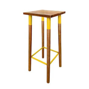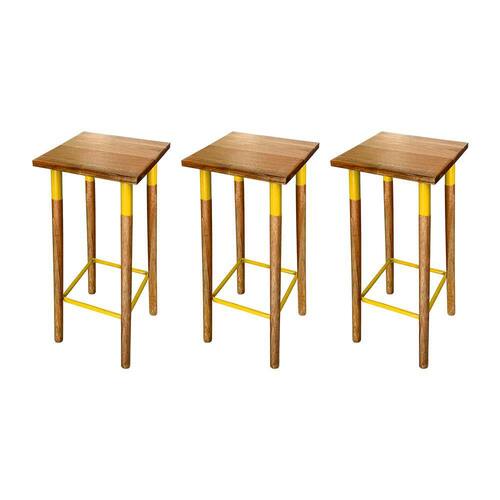 Kit 3 Banquetas Bistro Industrial Colors Ferro e Madeira Maciça - Amarela - Marrom