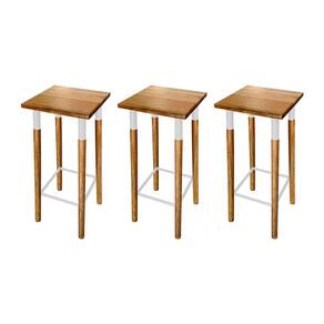 Kit 3 Banquetas Bistro Industrial Colors Ferro e Madeira Maciça - Branca - Marrom