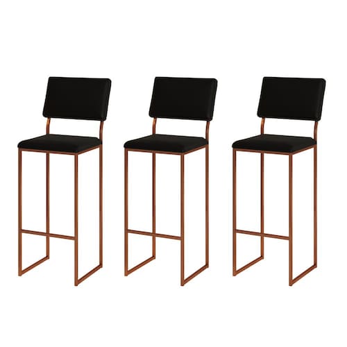 Características: Tipo: Banqueta Modelo: Nina Estilo: Industrial e Moderno Estrutura: Aço Carbono Cobre Assento: Estofado Tecido do Assento: Corino Cor do Assento: Preto