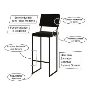 Características: Tipo: Banqueta Modelo: Nina Estilo: Industrial e Moderno Estrutura: Aço Carbono Preto Assento: Estofado Tecido do Assento: Corino Cor do Assento: Preto