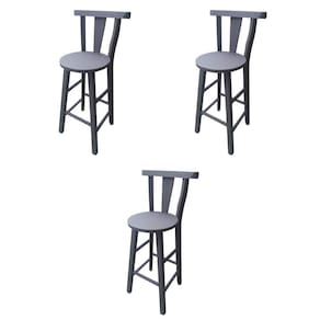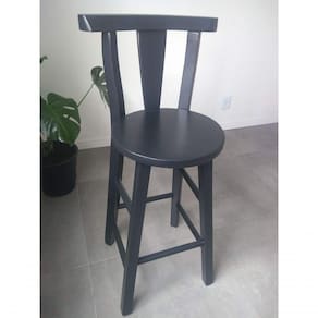 Banqueta com encosto, feitas artesanalmente de madeira reflorestada sem adição de fibras sintéticas ou aglomerados.