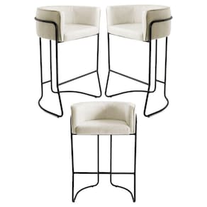 Kit 3 Banquetas Decorativas Base Aço Preto Betina C-107 Linho Bege - Domi