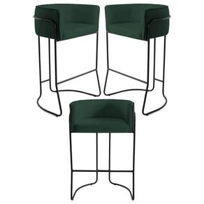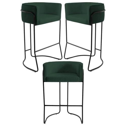 Kit 3 Banquetas Decorativas Base Aço Preto Betina C-117 Linho Verde - Domi