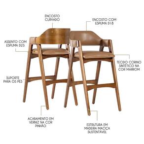 A Banqueta Lina é a combinação perfeita entre estilo, resistência e conforto. Ideal para cozinhas gourmet, bancadas ou espaços de convivência modernos, ela se destaca pela estrutura em madeira maciça de origem sustentável, que garante durabilidade e beleza natural ao mobiliário. Com acabamento envernizado na elegante cor Pinhão, seu visual é aquecido por tons terrosos e pela textura marcante do material sintético marrom de alto padrão, que reveste o assento e o encosto. Para garantir o máximo conforto no uso diário, o assento conta com espuma D23 e o encosto com espuma D18, proporcionando o equilíbrio ideal entre firmeza e maciez. CARACTERÍSTICAS TÉCNICAS: - Produzido em Madeira Maciça Sustentável; - Acabamento Envernizado na Cor Pinhão; - Assento Preenchido com Espuma D23; - Encosto Preenchido com Espuma D18; - Tecido em Material Sintético de alto padrão na Cor Marrom. *Indicada para Bancadas/Mesas com Alt. 100/105 cm.