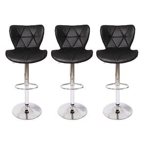 Kit ;3 Banqueta Cadeiras Altas Com Encosto Alto Estofado Para Cozinha Americana Balcão Bancada Bar Pub Bistrô Ilha Com Altura Regulável Giratória Formiga Slim Lille Preta