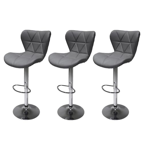Kit 3 Banquetas Cadeiras Altas Com Encosto Alto Estofado Para Cozinha Americana Balcão Bancada Bar Pub Bistrô Ilha Com Altura Regulável Giratória Formiga Slim Lille Cinza