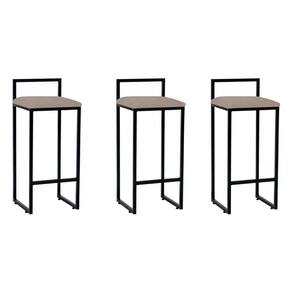 Kit 3 Banquetas Altas Industriais Em Aço Dori Preto Assento Suede Bege