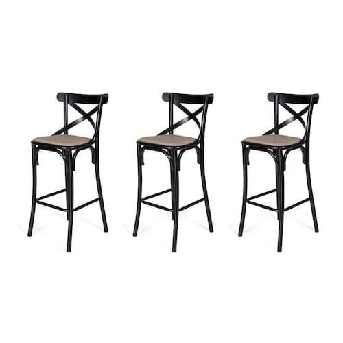 Kit 3 Banquetas Katrina Em Aço Preto - Cor: Marrom