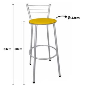 Kit 3 Banquetas Médias Prata com Assento Amarelo FortmixSeja para acompanhar um café rápido no início do dia ou aquela confraternização especial com os amigos, a Banqueta Média com Encosto será uma grande aliada na composição do seu espaço. Modelo Média, ela é ideal para acompanhar bancadas e balcões, seja na sala de jantar, espaço de churrasqueira ou até mesmo em seu estabelecimento comercial.Com design simples que conta com cor sóbria, a peça embeleza o seu espaço ao mesmo tempo que garante a comodidade ideal, afinal, o assento preenchido em espuma recebe superbem o corpo além do suporte para os pés. Produto que faz toda diferença no seu ambiente.Características da Banqueta Média com EncostoCor da Estrutura: PrataCor do Assento: AmareloCapacidade (kg): 120 kgMaterial da estrutura: Tubos de Aço carbono (7/8 de polegada)Material do assento: MDF e EspumaEncosto: ArameDimensões da Banqueta Média com Encosto Altura do assento até o chão (cm): 60 CmAltura do encosto até o chão (cm): 83 CmDiâmetro do assento: 32 CmConteúdo da Embalagem: 03 Banquetas Médias com EncostoDicasNão deixe suas banquetas expostas ao sol por mais de 4 horas.Não use produtos abrasivos na limpeza de suas Banquetas.Usar um pano umedecido na limpeza da Banqueta e, logo em seguida, seque-as com um pano seco.A tonalidade da cor pode variar de acordo com o lote do fabricante e/ou as configurações de seu monitor.*Imagens meramente ilustrativasGarantia3 Meses contra defeito de fabricação