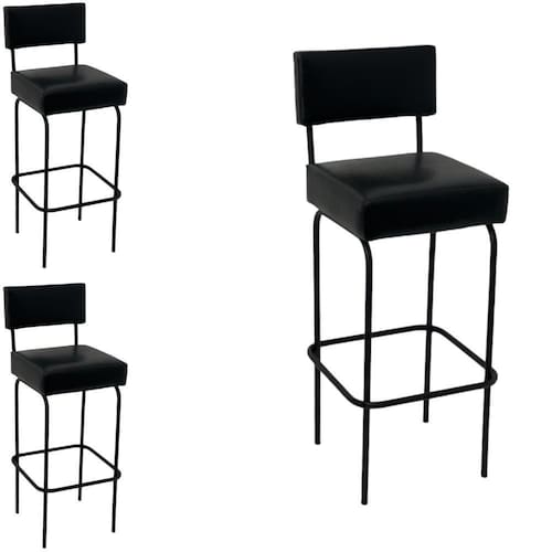 Quantidade de banquetas e bancos: 3 | Altura máxima: 92 | Unidade de Altura máxima: cm | Tipo de produto: Banqueta | Origem: | Estilo: Industrial | Material do assento: Corino | Materiais da estrutura: Aço carbono | Material do estofamento: Couro sintético | Unidade de Profundidade: cm | Diâmetro: 0 | Unidade de Diâmetro: | Largura: 34 | Peso: | Unidade de Peso: kg | Peso máximo suportado: 150 | Unidade de Peso máximo suportado: kg | Quantidade de pés: 4 | Requer montagem: Não | Inclui almofada: | Com estofado: Sim | Com altura ajustável: | Com rotação de 360 graus: | Com rodas: | Com apoio de braços: Não | Com espaço de armazenamento: | Com apoio de pés: Sim | Com encosto: Sim | Com tinta epóxi: Sim | Quantidade de caixas de embalagem: 1 | Inclui manual de montagem: | Profundidade: 34 | É dobrável: