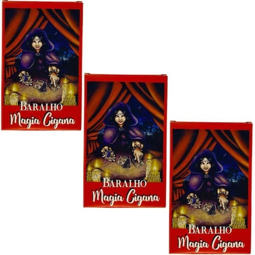 Kit 3 Baralhos Magia Cigana Vermelho 36 Cartas