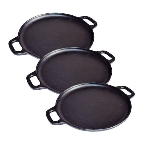 Kit 3 Bifeteira Ferro Fundido Lisa Redonda Alça Ferro 30cm