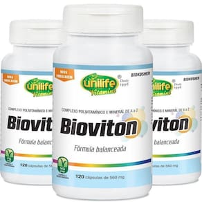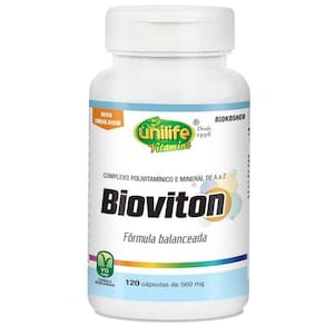 O que é o Bioviton em cápsulas da Unilife O Bioviton é um multivitamínico composto por diversos nutrientes todos naturais, que juntos possui diversas propriedades benéficas no nosso organismo e também contém vários nutrientes essenciais para o bom funcionamento do nosso corpo, ele tem como finalidade ser utilizado como um multivitamínico e antioxidante. Para que serve o Bioviton em cápsulas da Unilife O multivitamínico possui compostos de todas as classes de vitaminas no mundo o produto da Unilife é um ótimo complemente a nossa dieta para melhorar a nossa qualidade de vide e longevidade, fortalecendo todo o nosso sistema imunológico de forma muito rápida pois possui em sua propriedade nutrientes de fácil absorção pelo organismo, além de possuir ação antioxidante que elimina todos os radicais livres o que torna nossa saúde muito mais atrativa. Como devo utilizar o Bioviton da Unilife A fabricante Unilife recomenda a utilização de 2 cápsulas ao dia, totalizando uma dose diária com 400mg, fazer o consumo após a principal refeição e ingerir com líquidos, essa é a dose diária máxima recomendada pela Unilife, alterações desse consumo somente com acompanhamento de um da área de nutrição. Basicamente, o que é o Bioviton da Unilife R: Um suplemento natural com diversas propriedades e benefícios. Como devo utilizar o Bioviton da Unilife R: 4 cápsulas ao dia. Qual prazo de validade R: A Edin sempre disponibiliza o envio de seus produtos com prazo apto para ser consumido. É vegano R: Sim, produto de origem totalmente vegetal. Marca: Não Informado