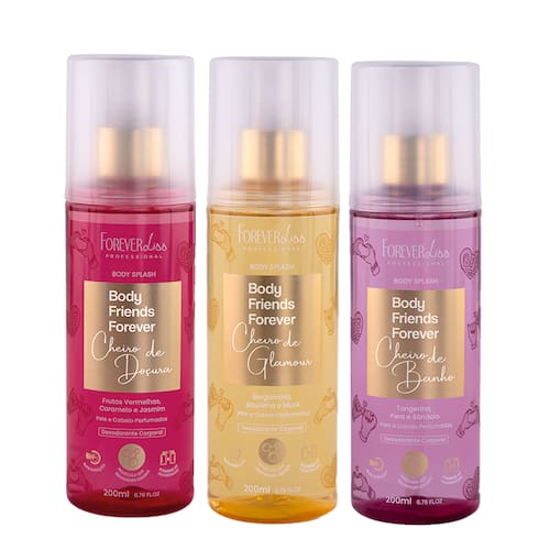 Os Body Splashes Body Friends Forever foram desenvolvidos para quem gosta de variar a fragrância conforme a ocasião, mantendo a sensação de frescor e perfumação ao longo do dia. Podem ser utilizados no corpo e também nos cabelos, com aplicação leve e prática para pós-banho e reaplicações sempre que desejar.