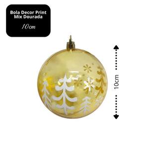 Kit 3 Bolas de Natal Decorada Print Dourada Translúcida 10cm