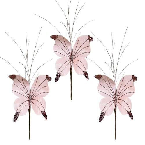 Kit 3 Borboletas Pick Natalina Decorada com Glitter Rosê – 23cm x 15cm