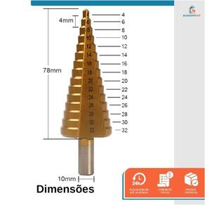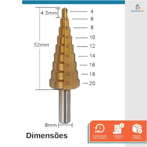 A broca escalonada de 4-12mm da Starfer é uma ferramenta de corte projetada para perfurar metais, madeira e outros materiais duros. Ela possui um formato cônico, com múltiplas etapas de diâmetros crescentes ao longo do corpo da broca.A broca escalonada é chamada assim porque cada etapa possui um diâmetro diferente, permitindo que você faça furos de tamanhos variados sem precisar trocar de broca. No caso da broca escalonada 4-12mm da Starfer, ela é capaz de perfurar materiais com diâmetros que vão de 4mm até 12mm.Para uso em furadeiras.Especificações técnicas:Material: Aço Rápido.5 escalas: 4mm, 6mm, 8mm, 10mm, 12mm.Diâmetro da haste: 6mm.Embalagem: Cartela blister dupla com 1 unidade.Marca: StarferRef.: 2416808