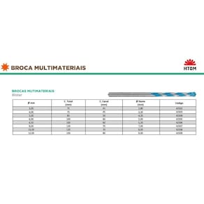 Kit com 3 Brocas de 8mm Multifunção Multimaterial Fura Tudo Metal Duro HTOM - Marca: HTOM - Referência: HTOM-42507-3X - Diâmetro: 8mm - Kit exclusivo com 3 brocas de 8mm multi materiais - Comprimento total: 120mm - Comprimento do canal: 70mm - Diâmetro da haste: 7mm - Material Premium: Corpo em Aço Cromo e Ponta de Metal Duro MD - Broca multi-material para - Para perfurar vários tipos de materiais. - Arestas de corte afiadas com diamante que garantem a perfuração em uma maior variedade de materiais - Ponta centradora para garantir uma maior precisão - Espiral Quadrupla com núcleo reforçado para uma maior estabilidade e resistencia na perfuração além de uma excelente extração de pó - As brocas multimateriais multiConstruction possuem haste cilíndrica e pode ser utilizada com todas as parafusadeiras e furadeiras com ou sem impacto com ou sem fios - A broca destina-se a praticamente todos os materiais que se encontram em trabalhos de instalação em interiores, incluindo concreto macio, alvenaria, tijolo, fibrocimento, materiais de construção leves, materiais multicamada, cerâmicas e ladrilhos, madeira, plástico, chapa de metal fina e alumínio. - Em casos do uso em materiais muito duros e ou resistentes, recomenda-se furos em duas ou mais etapas, ou seja iniciar com uma broca de menor bitola e aumentado aos poucos - : 90 dias Marca: Não Informado Ean: 7734625900942
