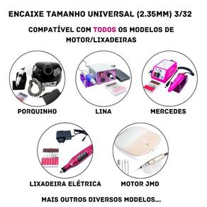 As brocas possuem diâmetro de aproximadamente 2.35mm 3/32'' polegadas que se encaixa na maioria das máquinas elétricas de manicure. - Eficiência elevada; -não dissipa calor; -máxima resistência ao desgaste; -nano revestimento que garante vida longa à peça; -lavável, desinfetável e esterilizável.