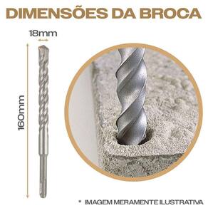 Jogo com 3 Brocas SDS Plus 18mm x 160mm Metal Duro Widea para Furar Concreto com Martelete Eda Profissional - Marca: Eda Profissional - Kit com 3 brocas - Diâmetro: 18mm - Comprimento: 160mm - Encaixe: SDS Plus - Ponta de metal duro com tungstênio vídea - Corpo em aço carbono temperado - Ideal para perfuração em concreto, granito, azulejo, rocha, alvenaria, rochas e pisos - Compatível com martelos rotativos que possuam encaixe SDS plus - Dureza 49 a 51 HRc que proporciona mais resistência em menos desgaste em sua haste helicoidal - Garantia: 90 dias contra defeitos de fabricação Imagem meramente ilustrativa: não representa as dimensões exatas da broca