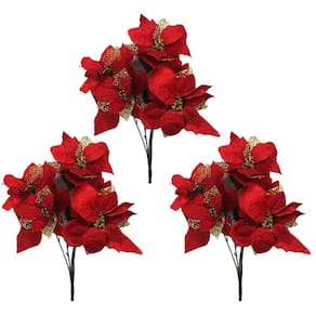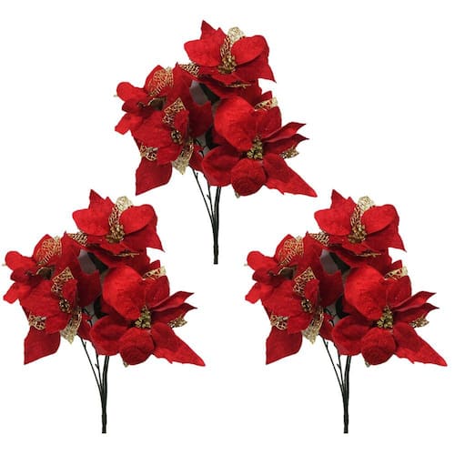 -03 unidades Buquê Natal Bico de Papagaio Vermelho Camurça e Dourado 5 Flores 47cm - Master Christmas