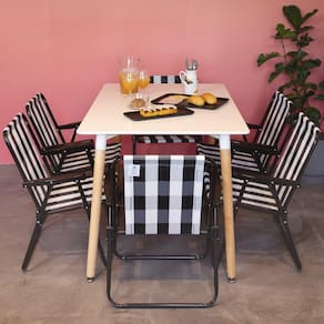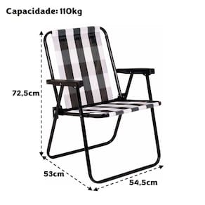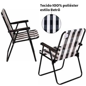 A nova Cadeira Alta Retrô possui design moderno e super nostálgico, que transforma qualquer ambiente. Dobrável e fácil de carregar, ela é super prática e confortável, perfeita para te acompanhar no camping, na pescaria ou no final de tarde com os amigos na varanda ou jardim de casa. Muito resistente, tem estrutura fabricada em aço carbono com acabamento em pintura epóxi à pó preta e peças plásticas em polipropileno, suportando até 110 Kg. Para guardá-la, basta dobrar e colocar em qualquer cantinho da sua casa. Sua tela é produzida em 100 % poliéster!