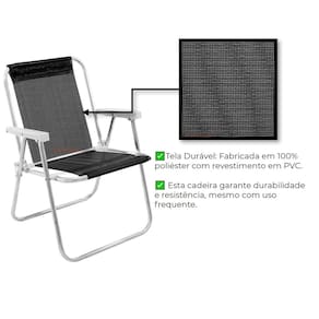 Tela Durável: Fabricada em 100% poliéster com revestimento em PVC, esta cadeira garante durabilidade e resistência, mesmo com uso frequente