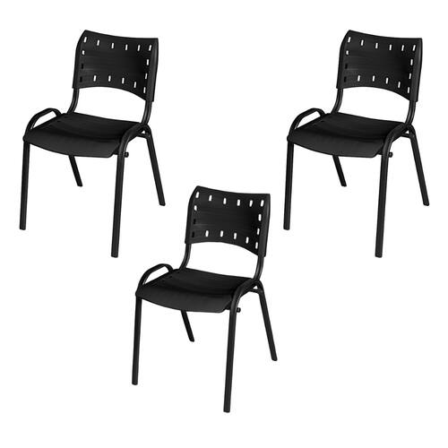 Especificações: - Estrutura dos pés: tubo oblongo 0,90mm; - Estrutura do encosto: tubo oblongo 1,20mm; - Pintura eletrostática preto fosco; - Assento e encosto de plástico; - Cadeira empilhável; - Suporta até 120kg; - Produto pré montado, apenas necessário realizar a montagem do encosto.