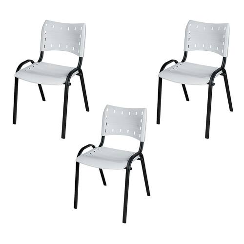 Kit 3 Cadeira ISO Tubo Oblongo Aço Industrial Empilhavel - Branco