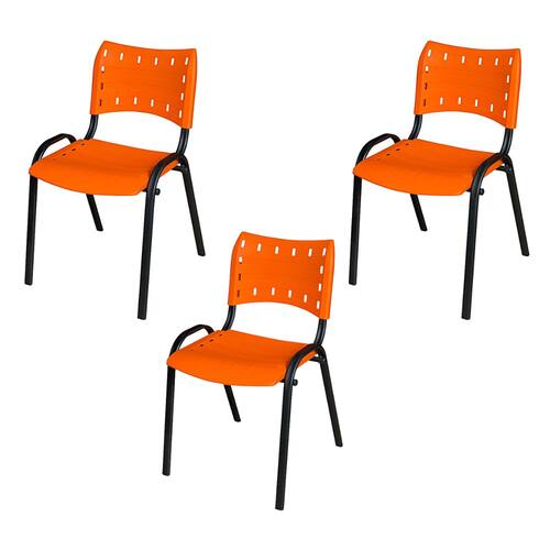Especificações: - Estrutura dos pés: tubo oblongo 0,90mm; - Estrutura do encosto: tubo oblongo 1,20mm; - Pintura eletrostática preto fosco; - Assento e encosto de plástico; - Cadeira empilhável; - Suporta até 120kg; - Produto pré montado, apenas necessário realizar a montagem do encosto.