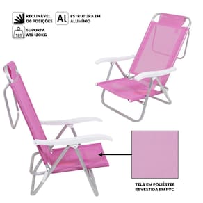 03 - Cadeira De Praia Reclinável 6 Posições Em Alumínio