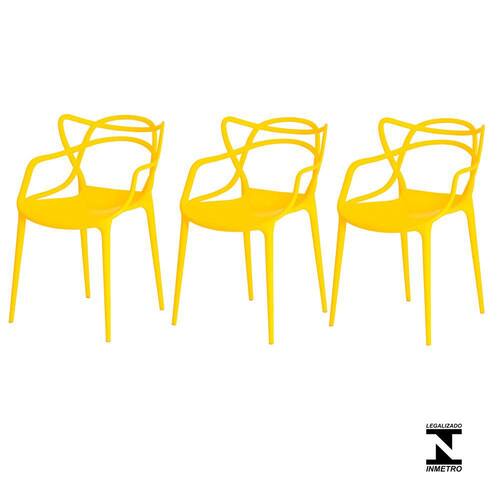 Kit 3 Cadeiras Allegra Amarela Sala Cozinha Jantar - Amarelo
