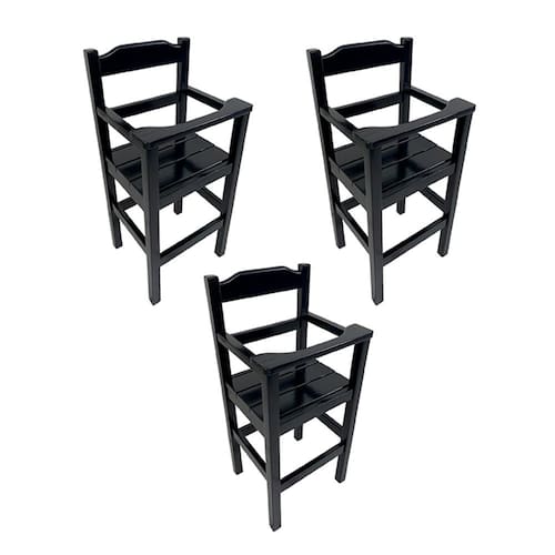 Características: Tipo: Kit Cadeiras de Bebê Modelo: Trava Fixa Cor: Preto Estrutura em madeira resistente Modelo fixo, sem regulagens Travas laterais de segurança Ideal para uso doméstico e comercial
