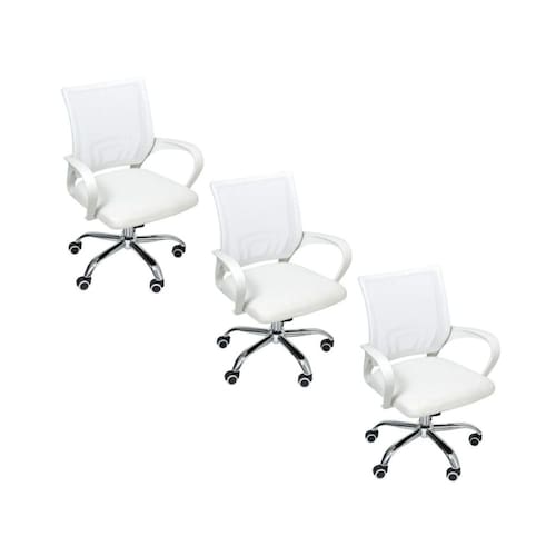 Kit 3 Cadeiras de Escritório Begonia Ergonômico Branco - Preto