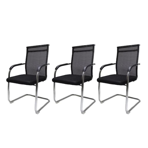 Kit 3 Cadeiras de Escritório Home Office Diretor Londres Tela Mesh Fixa Preta