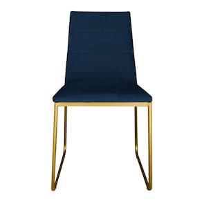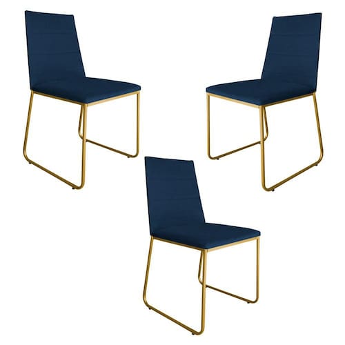 Kit 3 Cadeiras de Jantar Estofada Lille Base Gold Veludo Azul Marinho - Montanaris Decor
