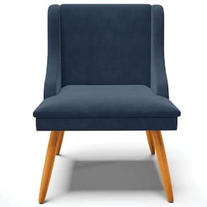 Kit 3 Cadeiras Decorativas Sala De Jantar Pés Palito De Madeira Suede Azul Marinho/natural - Azul Doce