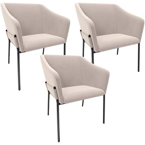 Que tal inovar na sala de jantar e apostar em um modelo de cadeira de jantar estilo poltrona?! Isso mesmo, com o Kit 03 Cadeiras Para Sala de Jantar Estar Living Olívia L02 Suede Bege, da Lyam Decor, você pode.