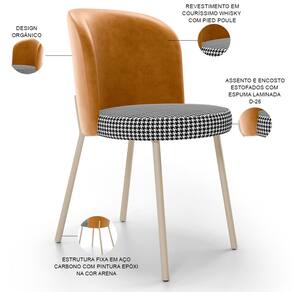Com design contemporâneo, essa cadeira estilo industrial se destaca não somente por ser uma peça de mobiliário versátil, já que pode ser aproveitada na cozinha, sala de jantar, área gourmet e até mesmo salão de festas; como também recebe atenção pelo conforto que oferece, graças ao assento e encosto revestidos com espuma laminada D-26, de modo que você desfrute de momentos incríveis durante as refeições. Já os pés em aço carbono conferem resistência e durabilidade, garantindo que você desfrute dessa cadeira por muito tempo.
