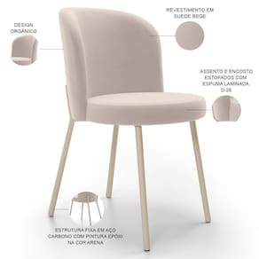 Altura da cadeira: 80 cm | Altura do assento a partir do solo: 46 cm | Color: Bege | ColorFamily: Bege | ColorSimple: Bege | ColorSupplier: Bege | Cor: Bege | Cor da estrutura da cadeira: Arena | Cor do assento: Bege | Cor do estofamento: Bege | Desenho do tecido: Liso | É cadeira de balanço: Não | É dobrável: Não | É empilhável: Não | Espessura do assento: na | Fabricante: Lyam Decor | Firmeza: Firmeza | Largura da cadeira: 44 cm | Largura do assento: 42 cm | Material: Estrutura em Aço carbono, Revestimento em Suede e espuma | Material do estofamento: Suede e espuma | MaterialFamily: Aço carbono, suede e espuma | Model: Gavi | OriginCountry: Nacional | OriginState: PR | Peso máximo suportado: 120 kg | ProductContents: 03 Cadeiras | ProductHeight: 81 cm | ProductInstructions: Produto para uso em ambiente interno, nao devendo ficar exposto ao sol, calor e umidade excessivos. | ProductLength: 108 cm | ProductWarranty: 90 dias após o recebimento do produto | ProductWeight: 15 kg | ProductWidth: 90 cm | Profundidade da cadeira: 53 cm | Profundidade do assento: 42 cm | Requer montagem: Não | SizeDescription: Altura: 81 cm x Largura: 90 cm x Profundidade: 108 cm | SupplierSimpleName: Kit 3 Cadeiras Sala de Jantar Estofada Gavi Arena L02 Suede Bege - Lyam Decor | Tempo de montagem: na
