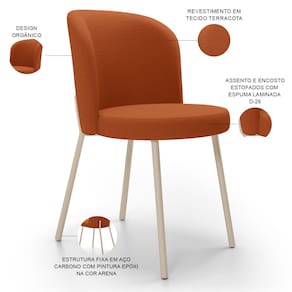 Com design contemporâneo, essa cadeira estilo industrial se destaca não somente por ser uma peça de mobiliário versátil, já que pode ser aproveitada na cozinha, sala de jantar, área gourmet e até mesmo salão de festas; como também recebe atenção pelo conforto que oferece, graças ao assento e encosto revestidos com espuma laminada D-26, de modo que você desfrute de momentos incríveis durante as refeições. Já os pés em aço carbono conferem resistência e durabilidade, garantindo que você desfrute dessa cadeira por muito tempo.